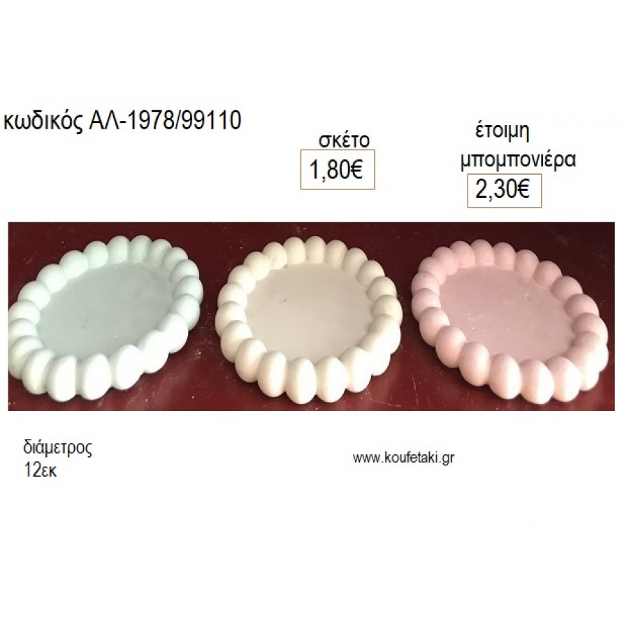 Μπορείτε να το ζητήσετε ως έτοιμη μπομπονιέρα με άριστο δέσιμο με κρυσταλιζέ τούλι 24χ24εκ.και 5 κουφέτα αμυγδάλου ή 5 κουφέτα πικολίνο (σοκολάτας) ή 15 σμάρτυς και 2 κορδέλες σατέν 0.03εκ.συνεργάτες της.