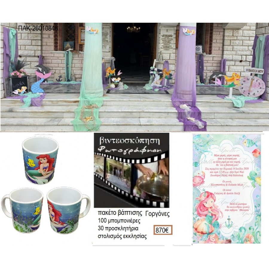 ΓΟΡΓΟΝΕΣ πακέτο βάπτισης 100 μπομπονιέρες 30 προσκλητήρια στολισμός εκκλησίας φωτογράφιση βιντεοσκόπηση ΠΑΚ-26010846 870.00€!!!