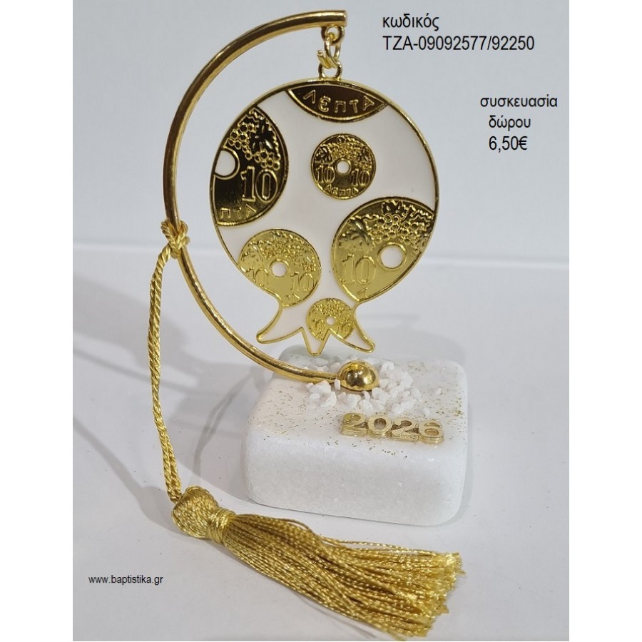 ΡΟΔΙ ΛΕΥΚΟ ΜΕ ΝΟΜΙΣΜΑΤΑ ΣΕ ΗΜΙΚΥΚΛΙΟ ΠΑΝΩ ΣΕ ΒΟΤΣΑΛΟ για γούρι δώρο ΤΖΑ-09092577/92250 6.50€!!!