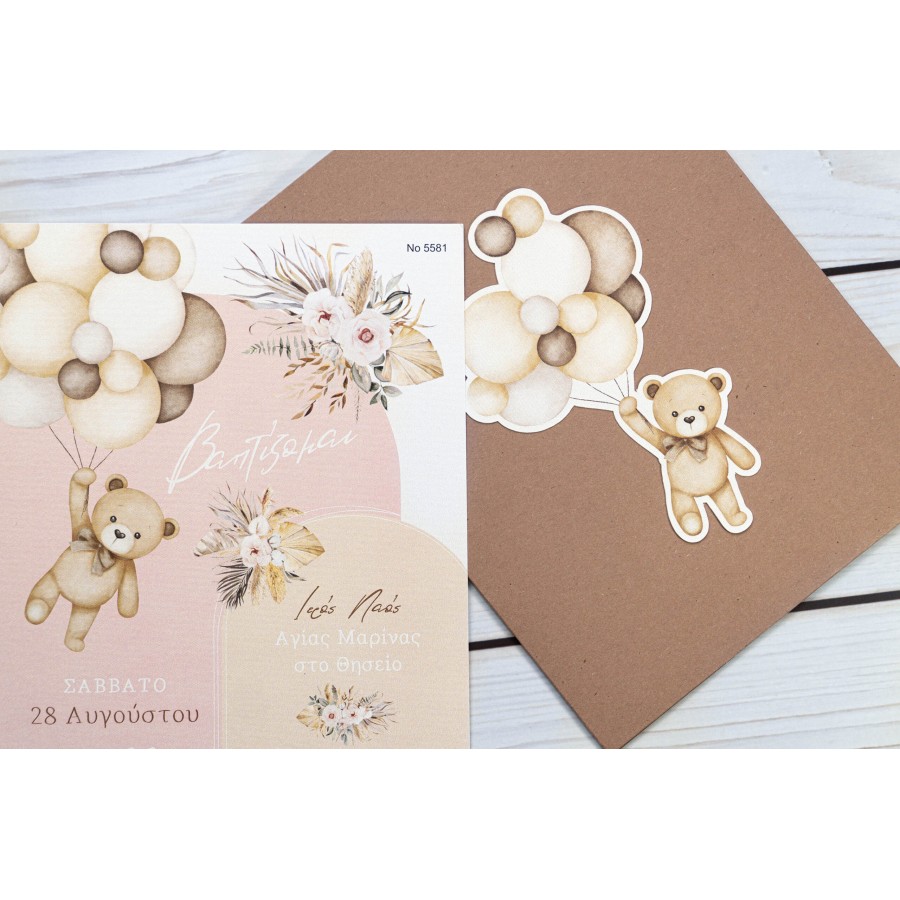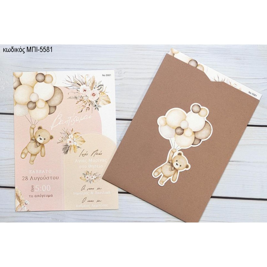 ΠΡΟΣΚΛΗΤΗΡΙΟ ΒΑΠΤΙΣΗΣ ΑΡΚΟΥΔΑΚΙ ΜΕ ΜΠΑΛΟΝΙΑ ΣΕ ΦΑΚΕΛΟ ΚΑΦΕ ΜΠΙ-5581