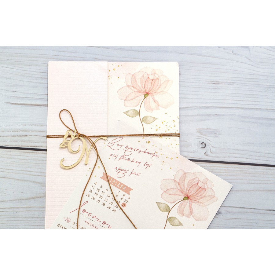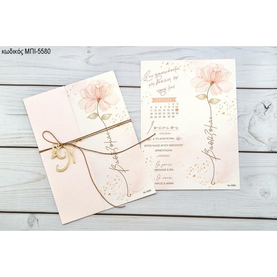 ΠΡΟΣΚΛΗΤΗΡΙΟ ΒΑΠΤΙΣΗΣ ΜΕ ΛΟΥΛΟΥΔΙ ΡΟΖ ΣΕ ΦΑΚΕΛΟ ΑΝΟΙΚΤΟ ΡΟΖ ΜΠΙ-5580