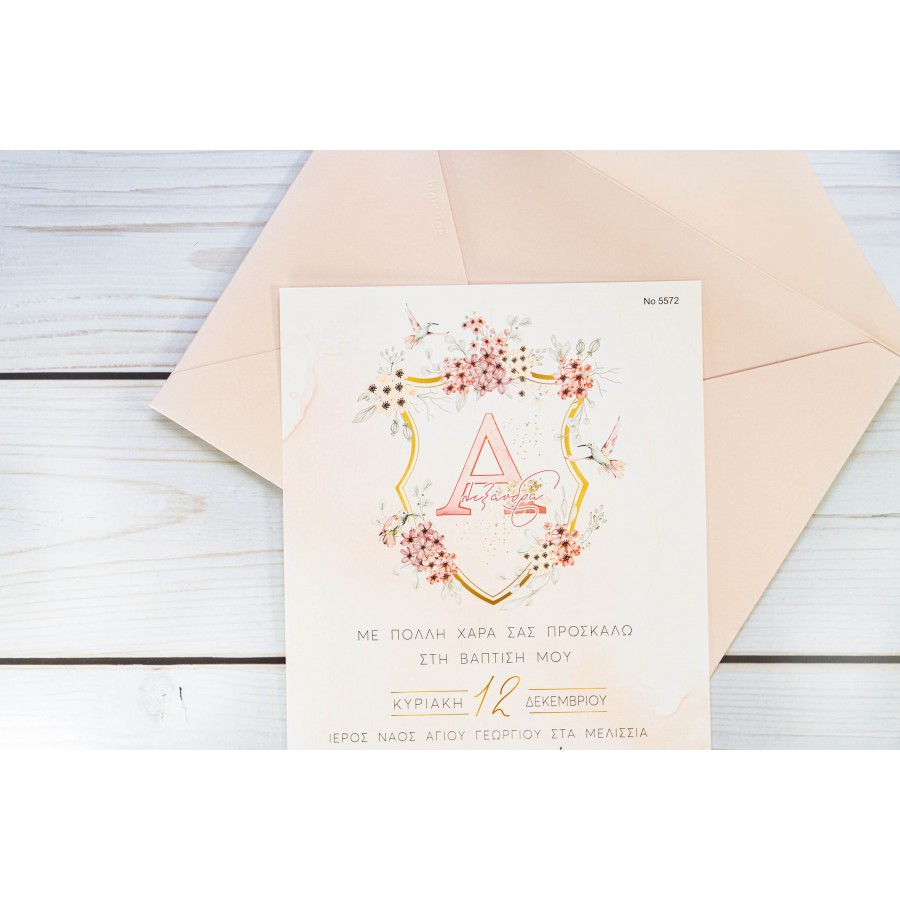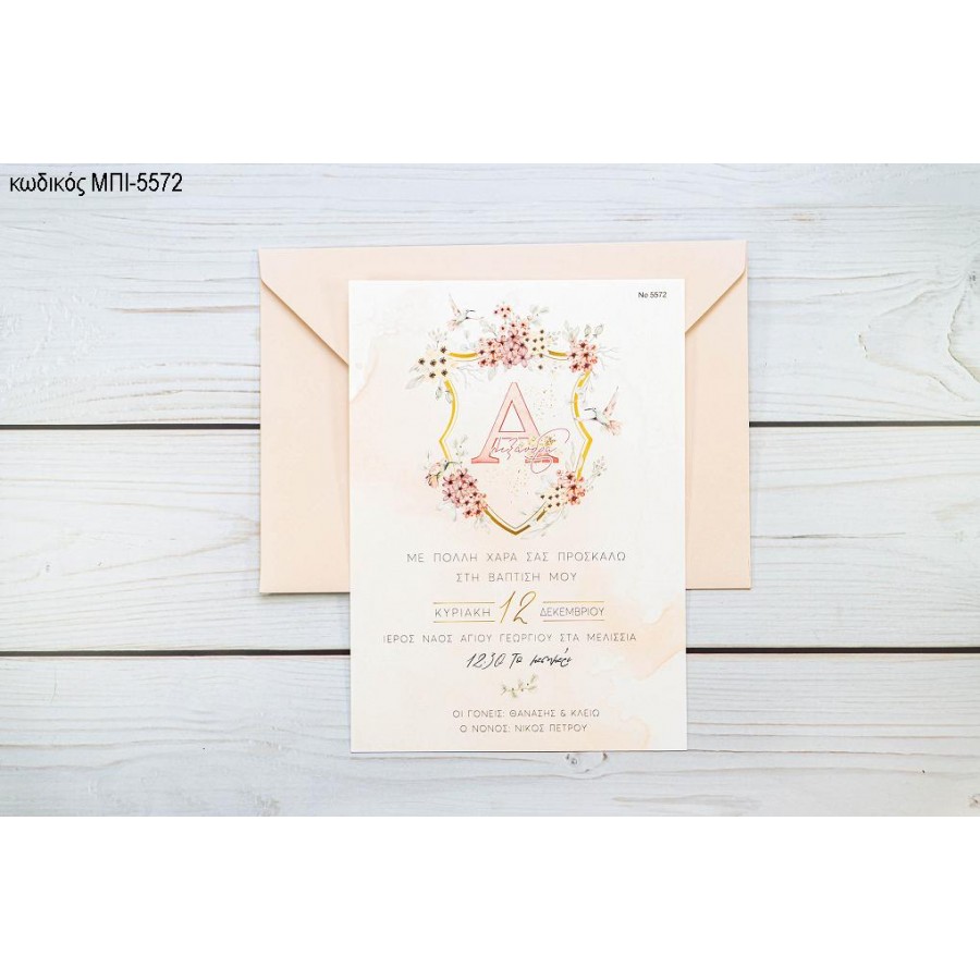 ΠΡΟΣΚΛΗΤΗΡΙΟ ΒΑΠΤΙΣΗΣ ΜΕ ΜΟΝΟΓΡΑΜΜΑ ΜΕ ΛΟΥΛΟΥΔΙΑ ΣΕ ΦΑΚΕΛΟ ΡΟΖ ΜΠΙ-5572
