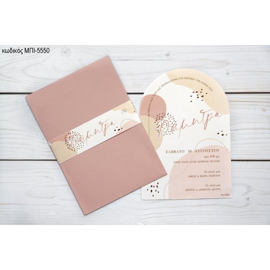 ΠΡΟΣΚΛΗΤΗΡΙΟ ΒΑΠΤΙΣΗΣ ΜΕ ΟΝΟΜΑ ΟΒΑΛ ΣΕ ΧΡΩΜΑ ΡΟΖ ΣΑΠΙΟ ΜΗΛΟ ΜΠΙ-5550