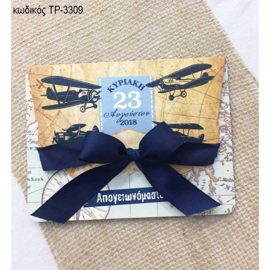 ΠΡΟΣΚΛΗΤΗΡΙΟ ΒΑΠΤΙΣΗΣ ΑΕΡΟΠΛΑΝΑ ΔΙΠΤΥΧΗ ΚΑΡΤΑ ΜΕ ΚΟΡΔΕΛΑ ΤΡ-3309